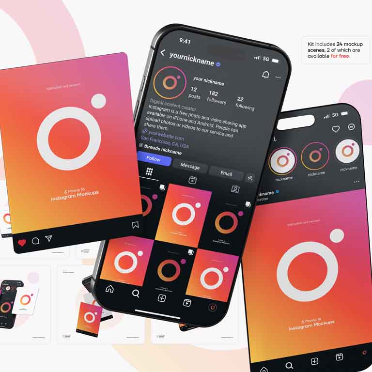 Free Instagram Mockup PSD (iPhone 16 Bundle Set)