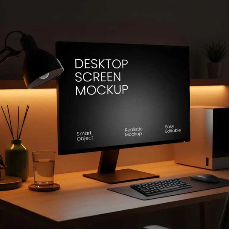 Free Home Office Desktop Screen Mockup PSD | Workspace Scene